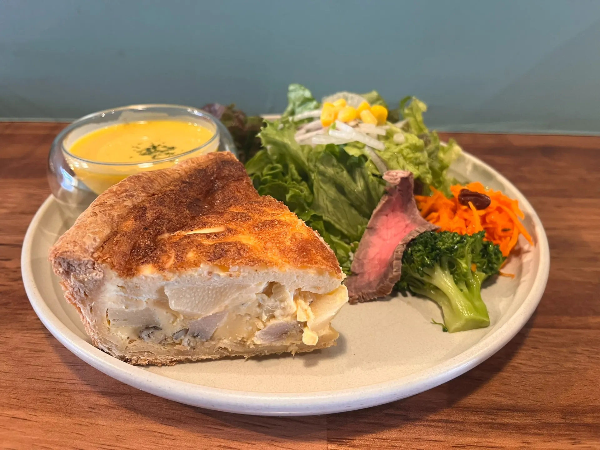新作キッシュ販売スタート! 2026/03/31 春の新作キッシュ販売スタート! ◎「キッシュ ハーブチキン&タケノコ」単品¥800 プレート¥1,350 ハーブでマリネしたチキンソテー。旬のタケノコのシャキッとした食感が相性抜群! 期間限定販売ですのでお早めに。。。 皆様のご来店を心よりお待ちしております。 NEWS