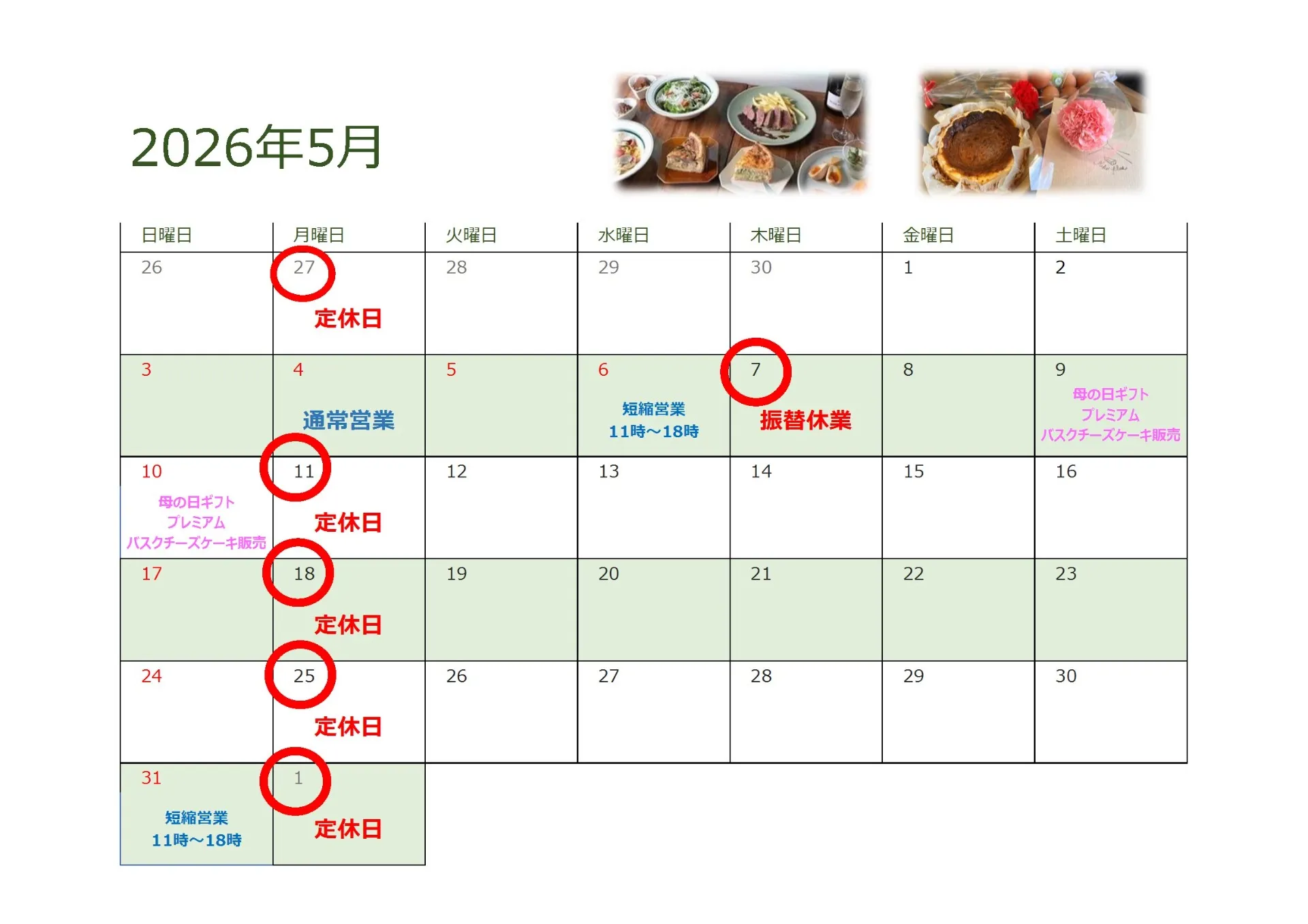 5月も皆様のご来店を心よりお待ちしております。